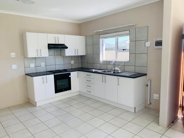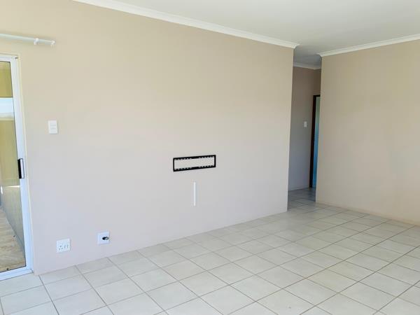The property offers 3bedrooms all with built-in cupboards, two bathrooms main en-suit. Has Open plan kitchen and lounge with a petio leading to a built in braai area.