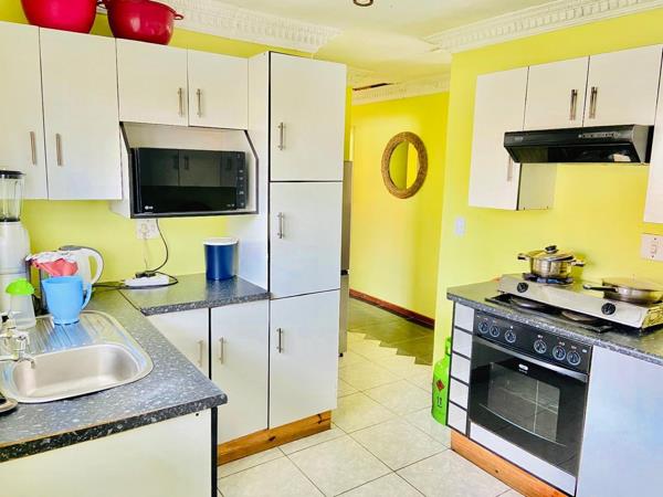 Spacious lounge and dining room for family time with a modern kitchen with built in cupboards and stove. The house is tiled in some rooms and laminated in some. The main bedroom featuring built-in and en-suite. Secured garage, gated entrance and fully walled for privacy.