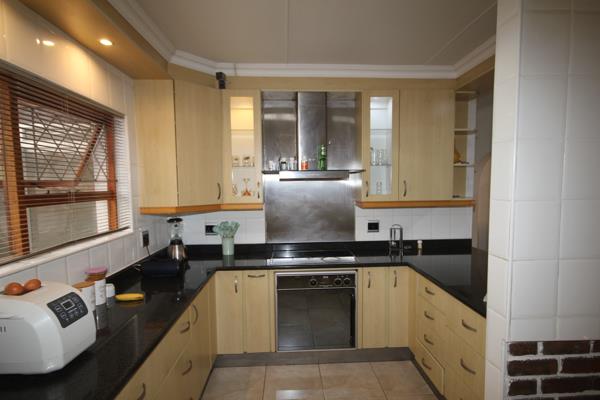 The main house features three generous bedrooms, two bathrooms, and a spacious, tiled layout throughout. The heart of the home is the well-appointed kitchen, boasting ample built-in cupboards and a functional layout perfect for family living. The living areas include two lounges that can easily be adapted into a dining room or TV/family room to suit your needs.