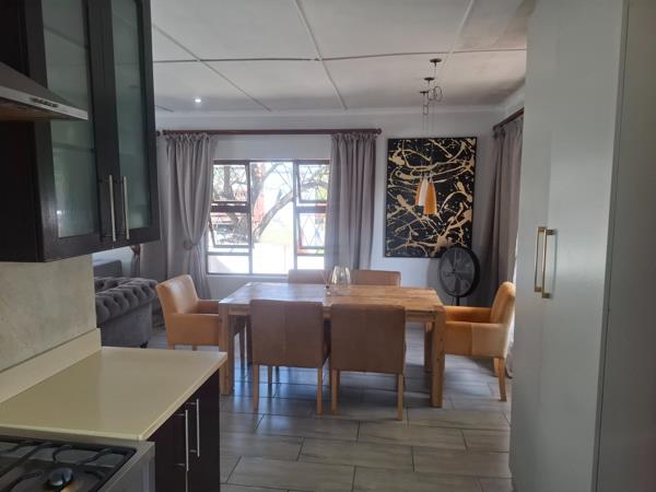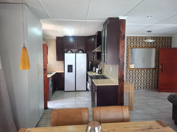 Outdoor living is a delight with a low-maintenance garden and a private braai area at the back, offering the ideal setting for relaxed weekends with family and friends. A secure garage and additional parking space for two vehicles ensure practicality and peace of mind.