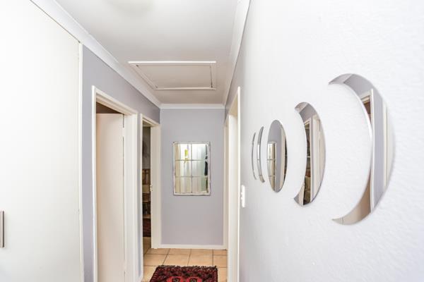 If you make your way down the passage, there are three generously sized bedrooms, two with built-in cupboards. The bathroom has a bath and shower over the bath for convenience and saving space.