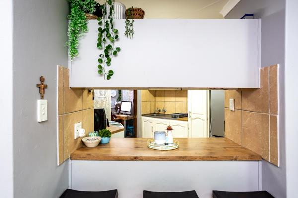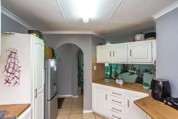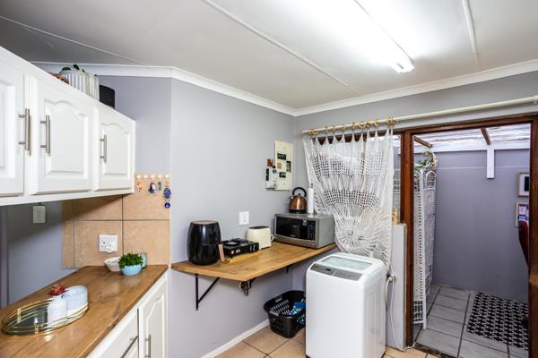 The property offers a cosy lounge just off the open plan kitchen. There is a enclosed area just off the kitchen that could be a small laundry area. The double doors from the lounge open onto a small private patio with a built-in braai and spacious enclosed yard perfect for the kids to play and fur babies to run.