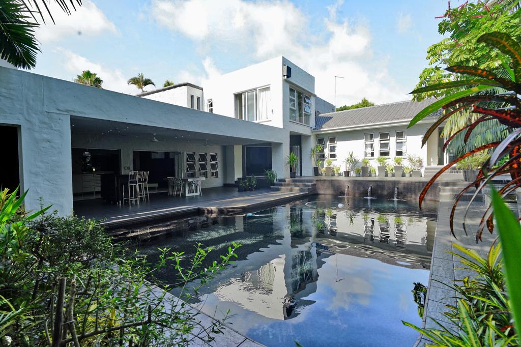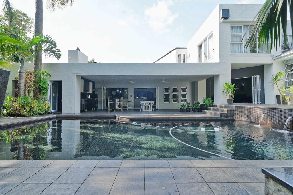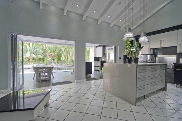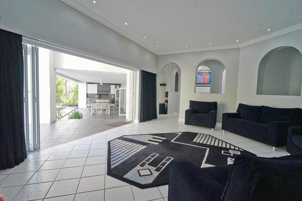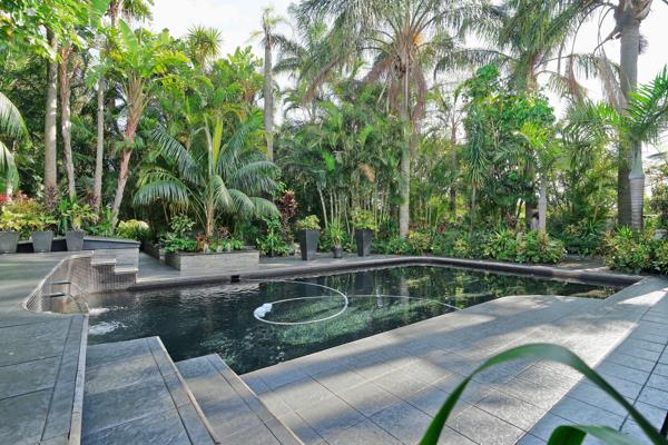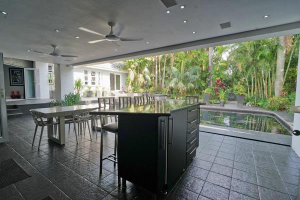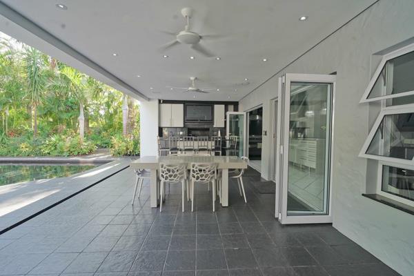 This stunning home is set in a lush, landscaped garden that surrounds a sparkling swimming pool, creating a serene and private retreat. The pool flows seamlessly into a well-appointed entertainment area, complete with a built-in bar, built-in braai, and a fully equipped kitchenperfect for hosting guests.