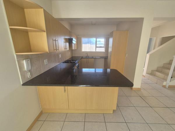 A dedicated home office or study provides the ideal setup for remote work or study, while the automated single garage with direct access into the home ensures security and practicality. There is also an additional parking space for a second vehicle. The townhouse is fully tiled throughout for easy maintenance, complemented by a small, low-maintenance garden.