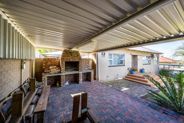 Outdoor highlights include a private garden for children and pets, an undercover entertainment area with a built-in braai for social gatherings, and a storeroom. Parking is well catered for with a double carport and secure additional space. Safety is prioritised with full boundary walls, an electric gate, burglar bars, and security gates.