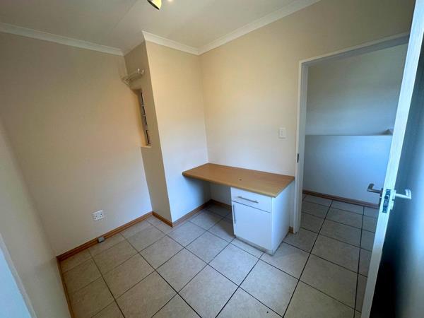 Upstairs, you will find three spacious bedrooms. The main bedroom features an en-suite bathroom, while the second bedroom offers additional space that can be used as a study, home office, or vanity area. All three bedrooms come with built-in cupboards (BIC). There is also a shared bathroom for added convenience.
