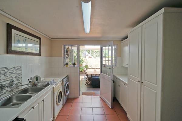 This inviting home offers a warm and comfortable flow, beginning with two loungesone set apart for a quieter, more intimate space, and the other opening directly onto the garden, creating a seamless indoor-outdoor feel. The dining room provides an ideal setting for family meals or entertaining guests.