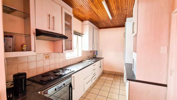 Both spacious bedrooms are tiled with built in cupboards. The open plan kitchen has enough cupboard space, a four burner stove with a hob. The bathroom has a tub, sink and a toilet.
