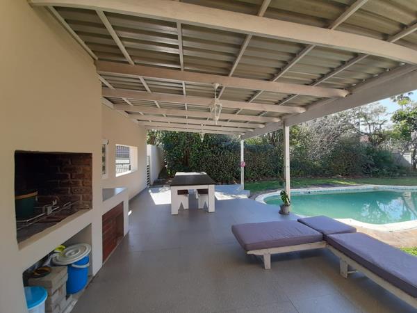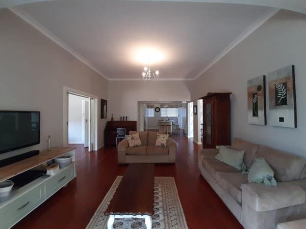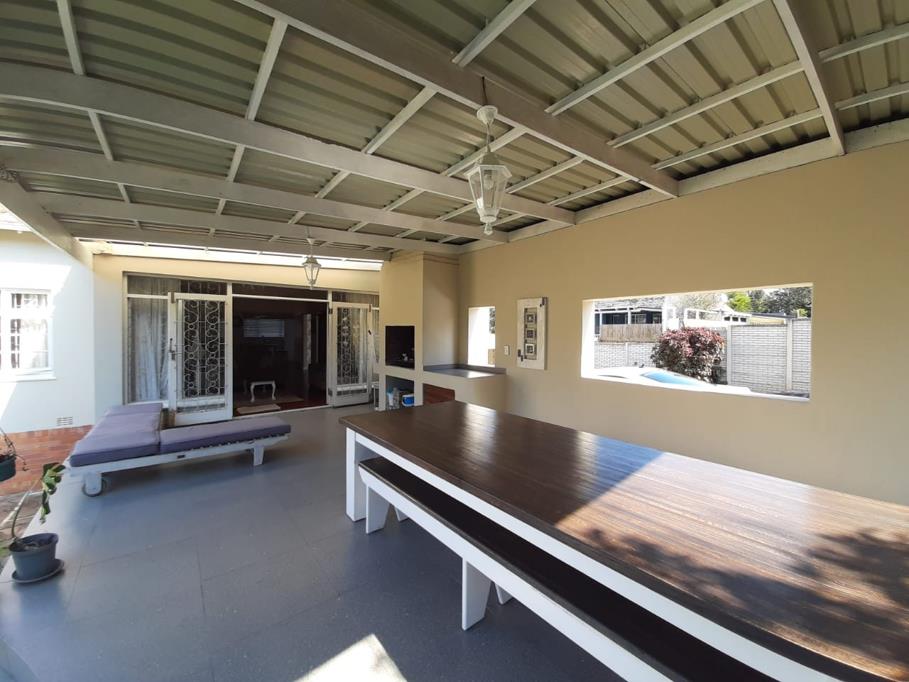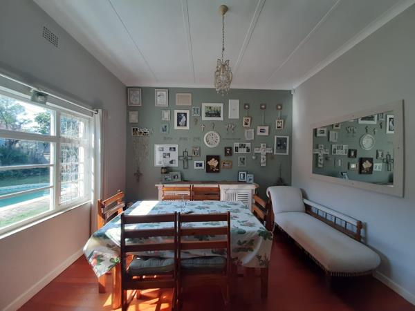 The property is located in a quiet road close to Clarendon and Selborne schools, a shopping centre and main roads. The well kept house has an entrance hall, open plan kitchen with an island and scullery (with granite quartz tops), a dining room and a lounge with doors leading out onto the large patio and entertainment area,. The entertainment area is right next to the pool and has a built in braai. There are four bedrooms (one with an en-suite) in the house, or the fourth bedroom may be used as a study. A main bathroom and separate toilet serves the three bedrooms and guests. The laundry, 2 store rooms, domestic quarters, cottage and bedsitter is located at the back of the house. Both the cottage and bedsitter are tenanted and have a bedroom, open plan living area/kitchen, shower/toilet/basin, prepaid electricity meter and electric geyser each. There is a covered car port in front of the single garage (under the house) and a paved parking area for 9 vehicles. 2 x 5000L Water tanks provide back-up water for the pool and garden and a solar geyser is linked to the house.