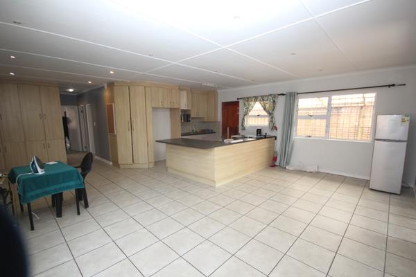As you enter, youll find a double remote garage with a remote gate and a double carport. The entry to the house leads to an entertainment wing with a built-in braai area, flowing into the main living area. The open-plan lounge, dining room and kitchen come equipped with all the essential amenities, as well as breakfast nook and pantry.