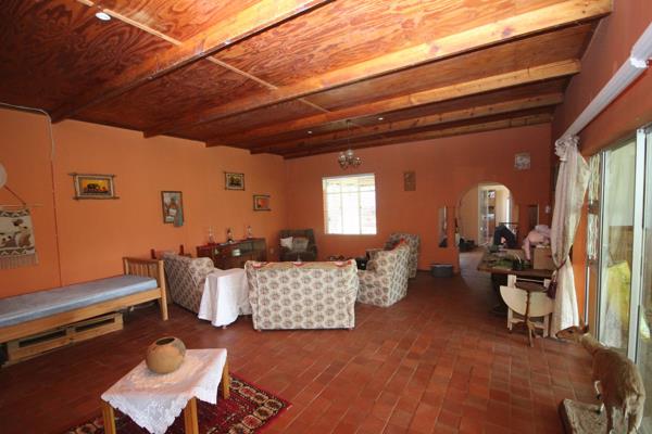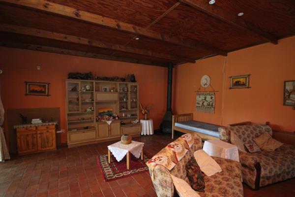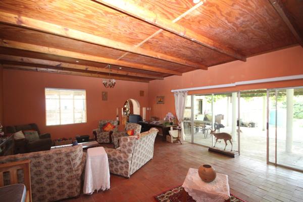Entering the house, you find a typical large entrance hall, dining room area, a large farm style kitchen with ample built-in cupboards, eye level stove, hob and extractor fan, leading to an indoor braai area, an office/study that could be converted to a 5th bedroom and laundry area. The main family lounge area you will find a fireplace for those family and friends get together, leading on to a patio covered with grape vines and amazing views of the rolling mountains not realizing you are only a few kilometers from town.