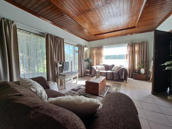 Step inside to a generous open-plan dining and lounge area, filled with natural light. This inviting space flows seamlessly into an enclosed outdoor entertainment area, complete with a built-in braai perfect for year-round gatherings. Just off this space, an additional lounge offers even more room to relax or entertain.