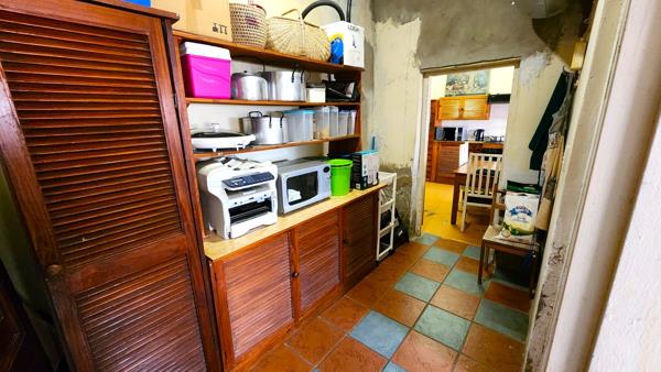 The main house offers three generous bedrooms, including a main suite with its own bathroom. The kitchen features ample cupboard space, classic wooden cabinetry, and a built-in stove, flowing effortlessly into a bright and spacious living area perfect for family time or entertaining guests.