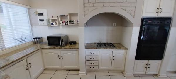 This property also includes a domestic room with walk in closet and a bathroom (toilet, shower, and sink). The property sits on a generous 1767 square meter erf, offering plenty of space and privacy. A double garage and ample open parking space provide plenty of room for vehicles.