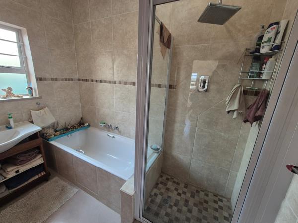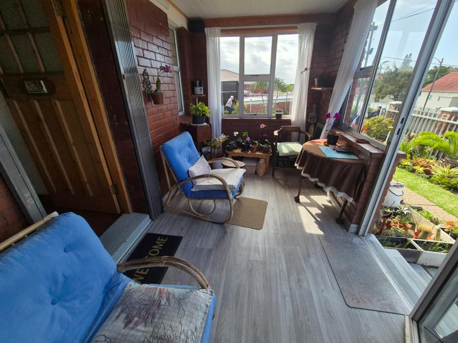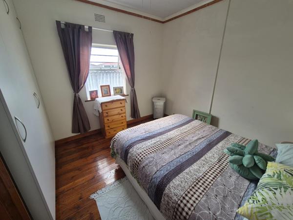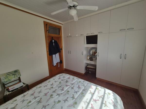 The enclosed veranda welcomes you with loads of natural light and is the ideal spot to start your day with a cup of tea while watching the waves roll in. Inside, youll find two spacious bedrooms with polished wooden floors and built-in cupboards, as well as a separate dining room that can easily be used as a third bedroom or home office. A family bathroom with a separate toilet adds practicality.