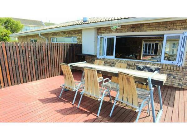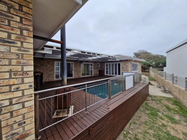 Enjoy the spacious open-plan lounge and living area offering breathtaking ocean views from every angle. Step onto your private walkway leading directly to the beach. The entertainment area features stack doors and windows that open onto a jet master braai and pub overlooking the inviting swimming pool. The modern open-plan kitchen is equipped with custom-made cupboards, granite countertops, a gas stove, and includes a separate scullery and laundry area.