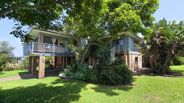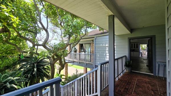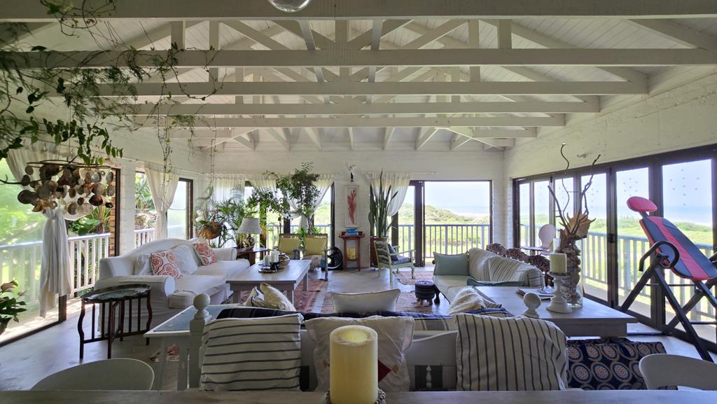 The highlight of this home is undoubtedly the expansive entertainment area featuring Stacking doors that open to breathtaking ocean and greenbelt views, exposed trusses adding a touch of rustic charm and an indoor fireplace perfect for all-weather braais.