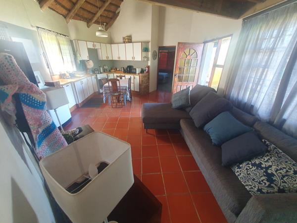 Set on a generous 559 m plot, the home features three comfortable bedrooms, one bathroom, a cozy lounge, and a separate dining area. The character-filled thatch roof adds to its rustic charm and complements the natural surroundings beautifully.