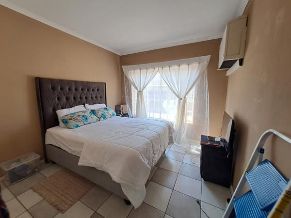 Heres a polished description for your townhouse: Nestled in a secure and well-maintained complex, this charming 3-bedroom townhouse offers modern comfort and effortless living. The spacious main bedroom features sleek tiled flooring, ample room for a king-sized bed, built-in closets, and the luxury of air conditioning. The two additional bedrooms, both fitted with cozy carpets and built-in storage, provide comfortable spaces for family or guests.The heart of the home is a bright and airy living room, complete with tiled floors and a ceiling fan, seamlessly flowing into an open-plan kitchen with stylish built-in cupboards. A well-designed bathroom includes both a bath and a shower, catering to relaxation and convenience. Step outside to a private backyard spaceperfect for a small garden or outdoor retreat. A well-covered carport/garage ensures secure parking. With its modern interior, neat finishes, and practical layout, this townhouse is an ideal choice for those seeking a comfortable home in a peaceful complex setting.