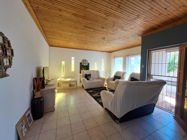 This charming 3-bedroom home invites you in with its spacious open-plan living area, seamlessly blending the entrance hall, dining room, and kitchen. A classic wooden ceiling adds a warm, rustic touch, while tiled floors throughout provide a polished, easy-care finish. The big porch, complete with a built-in braai, is perfect for outdoor gatherings. With two bathrooms, a single garage, and ample built-in cupboards, this home combines comfort with practicalityideal for anyone seeking a welcoming, cozy retreat.