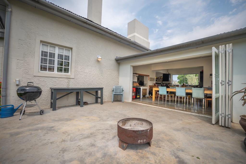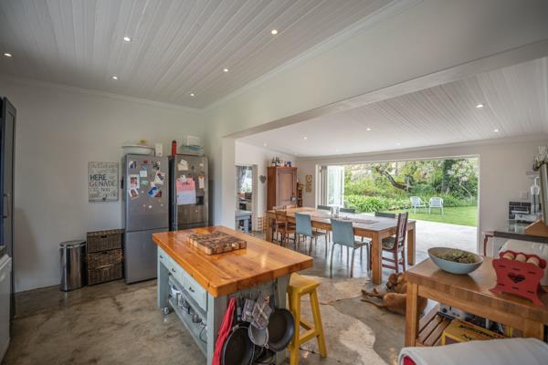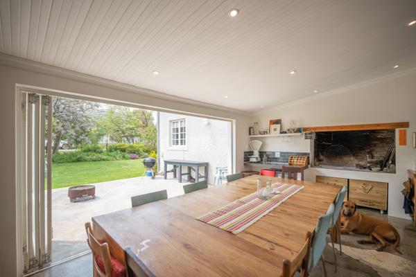 It has 4 generous bedrooms (2 en-suite) and an income-earning flatlet attached to the home. The kitchen and dining spaces have been newly renovated, with stack-away doors onto the patio. Sporting an indoor braai it is an ideal space for entertaining. The property has a borehole, which feeds the home as well as the large and well-established garden. A wonderland for those green-fingered among us. The wrap-around garden is also home to a rather large chicken coup, a veggie garden, and some beautiful citrus trees.