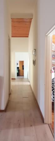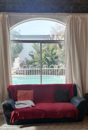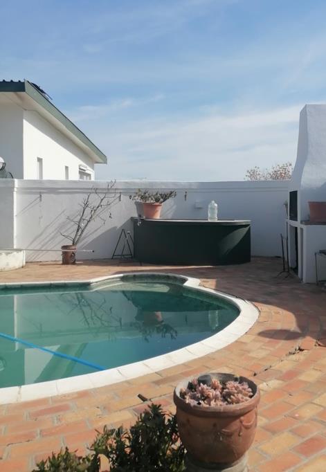 The spacious kitchen comes equipped with built-in cupboards (BIC), a built-in stove and oven, a scullery/laundry room, and a pantry. The highlight of the flat is the enormous living area, which leads directly to the swimming pool and additional braai area. For cosy evenings, theres a fireplace and a small bar with a washbasin, perfect for entertaining guests.