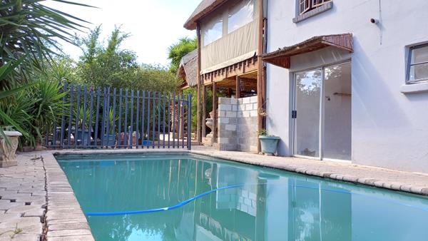The backyard is designed for enjoyment and functionality, featuring a fenced swimming pool, a convenient changing room, and an outdoor braai area ideal for hosting family and friends during the warmer months.