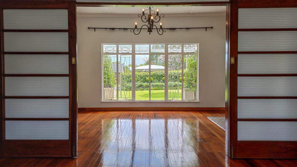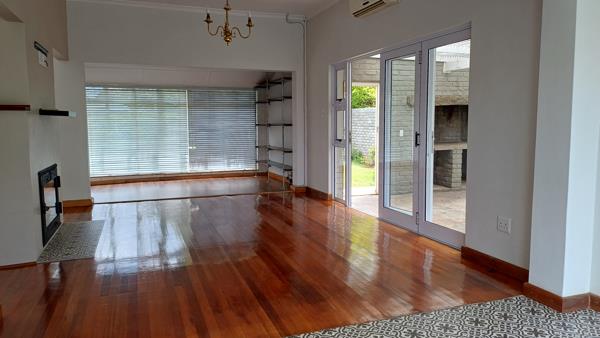 Large glass doors in the second living room open out to the backyard, where youll find a built-in braai area and a sparkling poolperfect for summer gatherings and outdoor enjoyment.