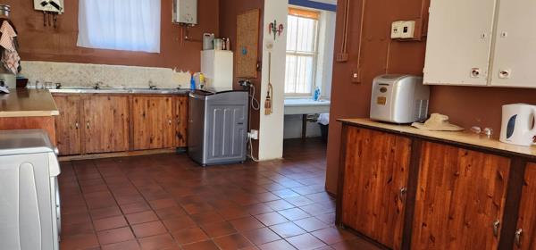 This property offers 7 beautiful bedrooms with original wooden floors. Open plan DiningLounge area with wooden floors, 2x ceiling fans, fireplace and a door to back yard. Large farm-style kitchen with wooden cupboards and a separate laundry and scullery room. A must see for the go-getter entrepreneur who wants to live on this large property and manage their own business.
