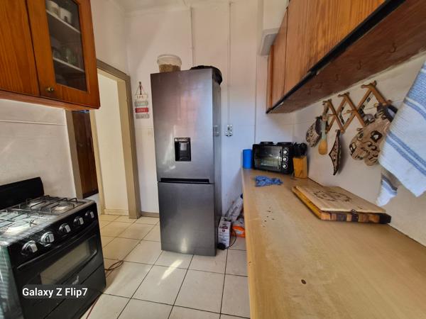 The kitchen is fitted with built-in cupboards, providing ample storage space for all your culinary needs.