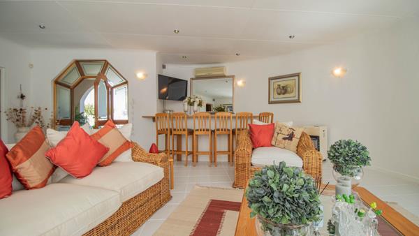 An indoor entertainment area with a built-in braai, bar complete with fridge, and large TV makes this property ideal for year-round entertaining. Two large garages with tiled finishes add practicality and space, while top-tier security features including a CDK system, palisade fencing, and remote-controlled gate ensure peace of mind.