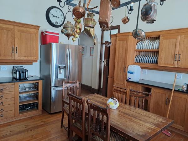 The kitchen is well designed with an air-conditioner, oak finishes, an additional butcher sink and plenty of cupboard space.