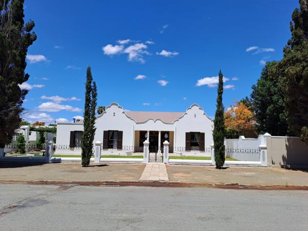 Three bedroom home for sale in Graaff-Reinet. This beautifully renovated three bedroom home is conveniently located across the road from the Union schools. Enjoy views of the green sport fields and lovely mountain views from the sunny front stoep.