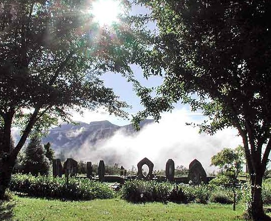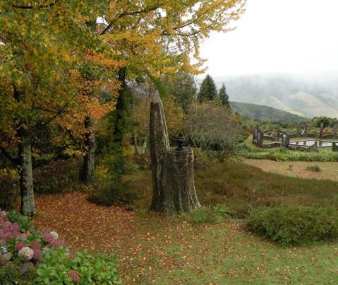 Your gaze falls first upon the stunning garden, where at the edge lies the world-famous Eco Shrinean art installation celebrating the beauty of Mother Nature and a unique Hogsback icon, with the mountains providing a breathtaking backdrop.