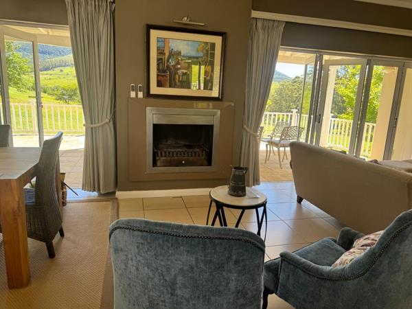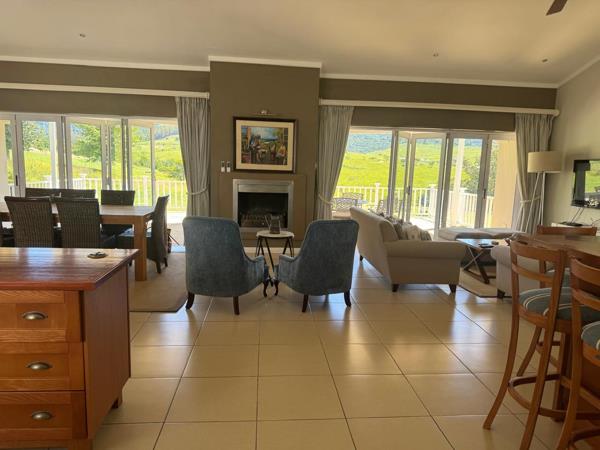 This exceptional property is perfectly positioned on the 2nd fairway, offering breathtaking views and a tranquil country setting. The open-plan design, with a fireplace, flows seamlessly onto a covered patio with a built-in braai, ideal for relaxed entertaining while soaking in the natural beauty.