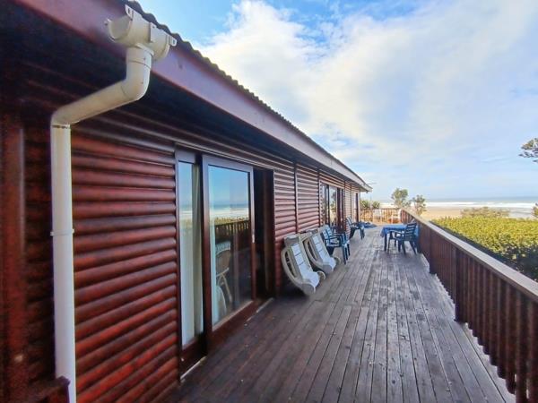 This incredible, private family log cabin home is a hidden gem, located off the beaten track in peaceful, tranquil, safe and undisturbed Mtati Lagoon Share Block (PTY)LTD house No.11, east of Mpekweni on the Sunshine Coast. It is so private that there is no sign board on the R72 indicating where it is. An ever so short and exclusive path takes you directly onto your forever changing front garden, the beach, controlled by mother nature.