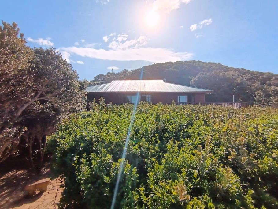 Off the living area are two bedrooms sharing a common bathroom and guest toilet. The front bedroom opens onto a large, suspended wrap around timber deck overlooking the beautiful, powerful untamed Indian Ocean. The bedrooms have BIC. On the opposite side of the house is the large master bedroom opening up onto the timber deck, overlooking the clivias below and milkwood treetops over the ocean horizon of pure paradise. Off the bedroom is a full ensuite. The master bedroom, living area and the one front bedroom all have direct access onto the front deck and stunning views of the natural dune vegetation, white squeaky sand and aloes, simply heaven on earth.