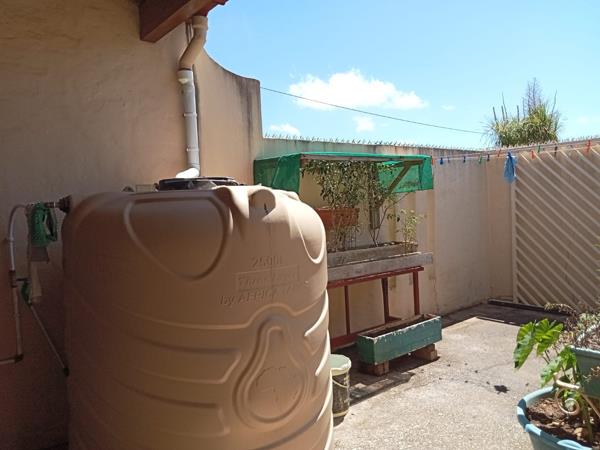 There are two sleek, modern bathrooms, including a main en-suite. The modern kitchen with granite countertops, a breakfast nook, and ample storage space. There is a single automated garage plus secure parking for a second vehicle. The property is secured with outdoor beams and a fitted alarm system. Additional features is an enclosed front courtyard with a water tank for convenience.