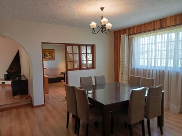 The property consists of a spacious lounge with a fitted air conditioner, open fire place, and doors leading to a private garden and an enclosed entertainment area featuring a built-in braai and jacuzzi. A dedicated dining room and an additional room that can serve as a study or second lounge. All three bedrooms feature built-in cupboards, with the main bedroom fitted with an air conditioner and the second bedroom equipped with a wall heater.