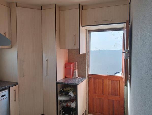 This property offers 2 bedrooms, kitchen with built-in cupboards, dining room, lounge and family bathroom. The property also consists of 2 flats at the back and 1 outside toilet.