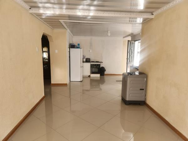 This modern home is fully walled and beautifully finished with ceramic tiles and stylish ceilings. It features a spacious open-plan living and dining area, creating a warm and inviting atmosphere.