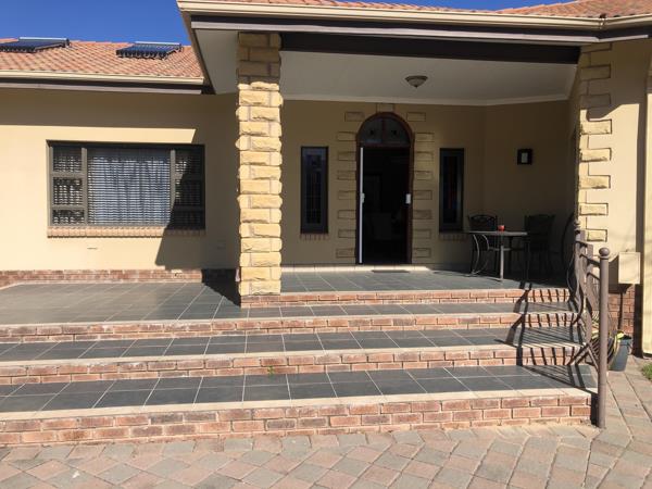 Outdoor Living: Enjoy the covered front and back verandas, an outdoor braai area, a picturesque fountain, and a simple, low-maintenance garden. The backyard and garden paths are paved for convenience and aesthetics.
