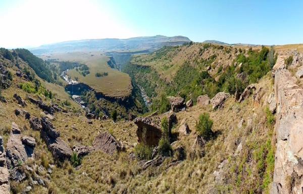 This scenic countryside property offers sweeping panoramic views of rolling hills and open grasslands, framed by distant mountain ranges, with a dramatic river gorge featuring rugged cliffs and rocky outcrops. Mature trees and pockets of greenery create tranquil outdoor spaces, while rustic buildings and a thatched structure provide potential for renovation or the development of a peaceful retreat. Ideal for nature lovers, the property combines wide open spaces, striking vistas, and serene surroundings for leisure or country living. The seller has disclosed that the existing buildings are currently uninhabitable, with repair or demolition required at the purchasers discretion, and the property is sold voetstoots.