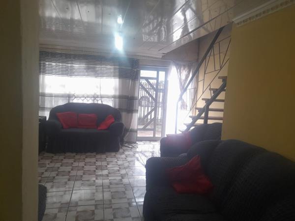 3 bedrooms lounge dinning room kitchen 2 bathrooms main bedroom with ensuite Outside storeroom garage is converted to a shop with granny flat pets are allowed. kitchen has build-in cupboards with electric stove with oven. aluminium windows and doors and sliding door in front. Face brick all round the house, Lounge, dinning room and kitchen has ceramic tiles on floor. Kitchen has ceramic tiles on the wall and both bathrooms.