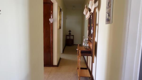 The entrance hall leads to 3 bedrooms and 2 bathrooms on the left, and on the right, the lounge, dining room, tvsun room and kitchen. There is a store room and a laundry, as well as a single garage and 2 carports. There is an outside braai area which has a door leading to the dining room.
