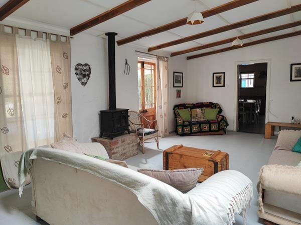 With double doors leading out to the patio and garden, the lounge has a lot of natural light. The lounge has a lovely wood stove for the cold winter nights. In order to protect the braai area on the patio from the elements, it is partially enclosed.
