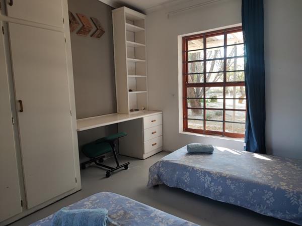 In this three-bedroom, two-bathroom home, there is the possibility that two additional flats could be added if some renovations are made to the property. All three bedrooms have built in cupboards. The main purpose of this building is currently to serve as a guesthouse. There is an agreement to sell it as a going concern, so it includes the furniture. If the flat idea is not done one can use the one room as a study and the other as a storage area.