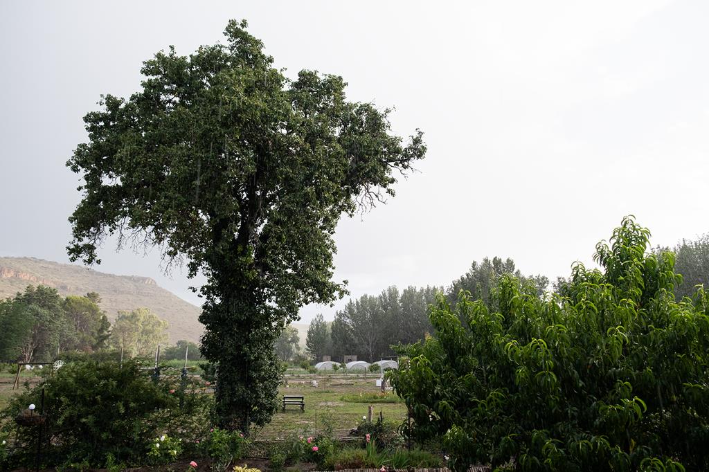 A large dam as well as a borehole, at the rear of the property provides a valuable water source, ready to be pumped for use on the grounds. To the right of the home, a spacious open plot of land offers endless possibilities from expanding your garden to developing a smallholding, guesthouse, or hobby farm.