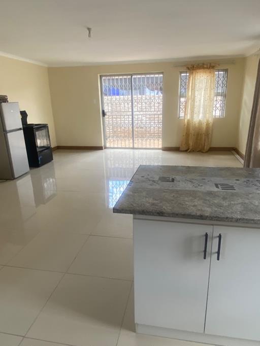 Step inside to discover an open-plan layout featuring a spacious lounge and dining area, seamlessly connected to the kitchen. The entire interior is adorned with modern, glossy tiled flooring and neutral-toned walls, creating a bright and airy atmosphere that is easy to personalize. Ample natural light floods the living spaces through large windows and a sliding door, all equipped with robust security bars and gates for enhanced safety.