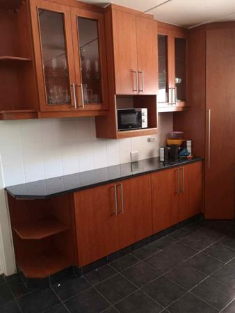 The home offers three spacious bedrooms, with the main bedroom featuring an en-suite bathroom. All bedrooms are fitted with built-in cupboards, and the passage also boasts additional cupboard space for extra storage. The rooms are light and airy, enhanced by large windows that allow plenty of natural light.